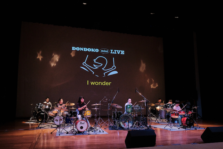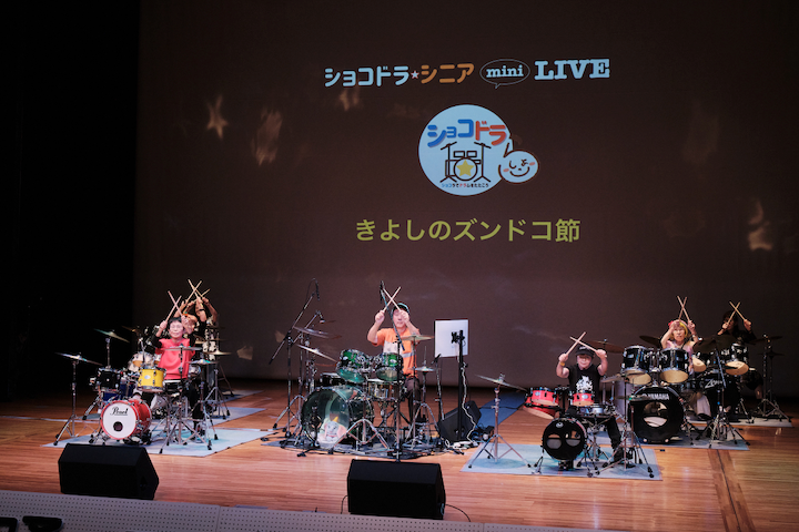 曲は「I wonder」「最高到達点」「はいよろこんで」「怪獣の花唄」「きよしのズンドコ節」。7台でのドラム演奏は圧巻で、年齢も経験も超えた一体感に、会場は早くも拍手の嵐でした。