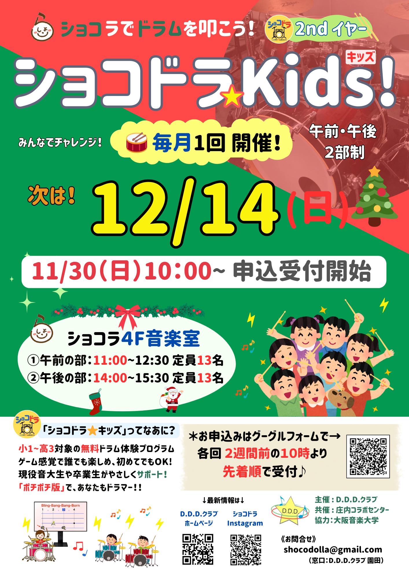 12月もショコドラ*キッズ! vol.7(12/14に開催)の申込受付は11/30(日)10:00~スタート!